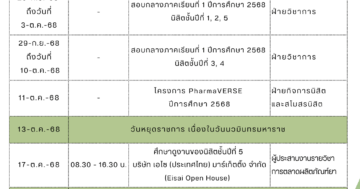 🧪 พิธีรับเสื้อกาวน์นิสิตเภสัชศาสตร์ ชั้นปีที่ 4 ประจำปี […]