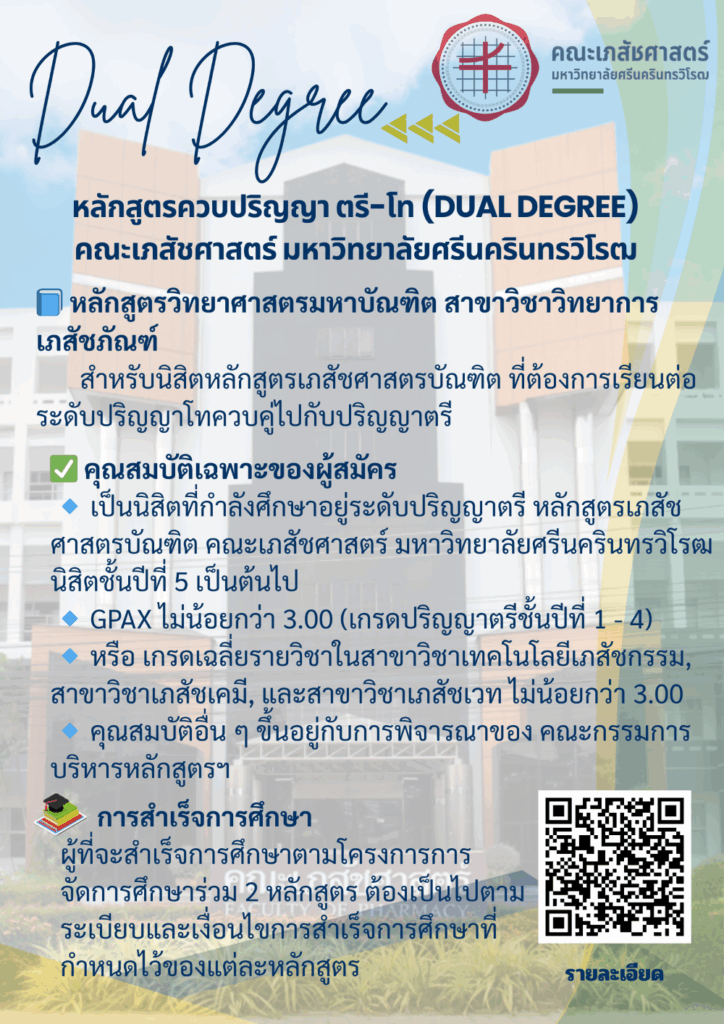 หลักสูตรควบปริญญาตรีและปริญญาโท(Dual Degree) รายละเอียดหลักสูตร ควบ2ปริญญา 2568 Post Views: 29 FacebookFacebookXXLINELine